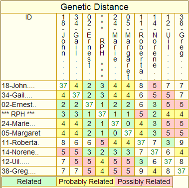 The most recent DNA test result for Patrilineage 2, showing a perfect match on 37 markers between R-24, a descendant of the man I call “John of Cumberland” County, PA, and R-05 & R-06, descended from William Robe of Monongalia County, VA, is consistent with my compound working hypothesis that: (1) William Robe of Monongalia was the son (or grandson) of the man I call “William of Chester” County, PA who died there, leaving a will, about 1745; and that (2) John of Cumberland was the younger brother of William of Chester (or otherwise very closely related to him). For those who understand what genetic distance is, here is a link to the GD matrix for ROBB Patrilineage 2.