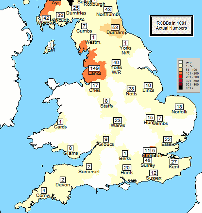 ROBBs in England & Wales, 1881, Actual Numbers