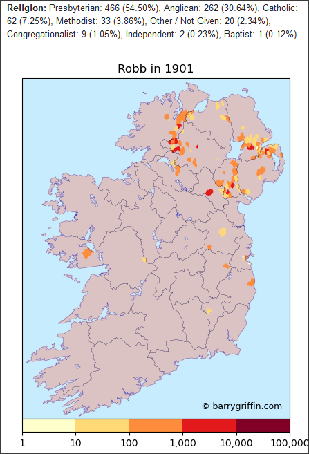 A finer-grained analysis of where the ROBBs were to be found in 1841 (the earliest every-name UKCensus), down to the parish level, might shed further light on the origins of the various lines of ROBBs in Scotland.
