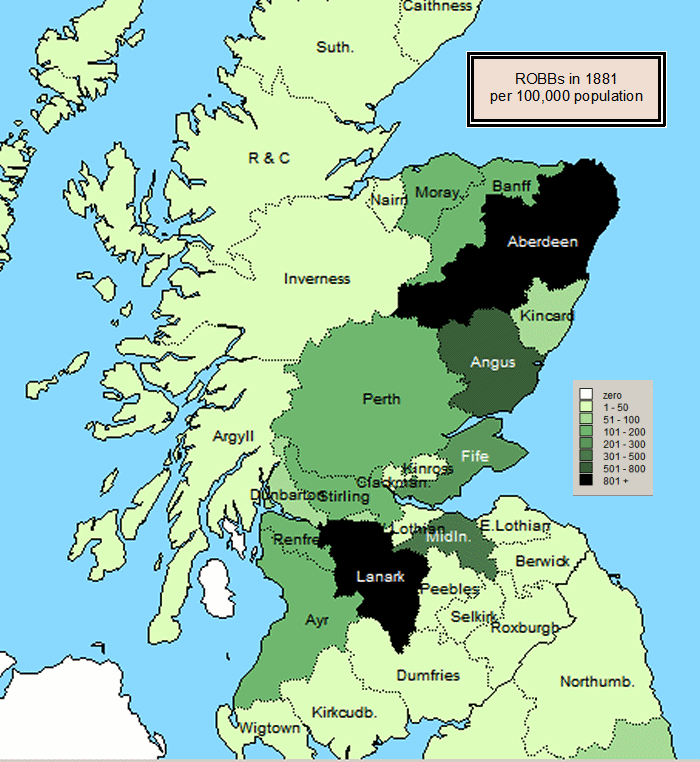 ROBBs in Scotland, 1881, per 100,000 Population
